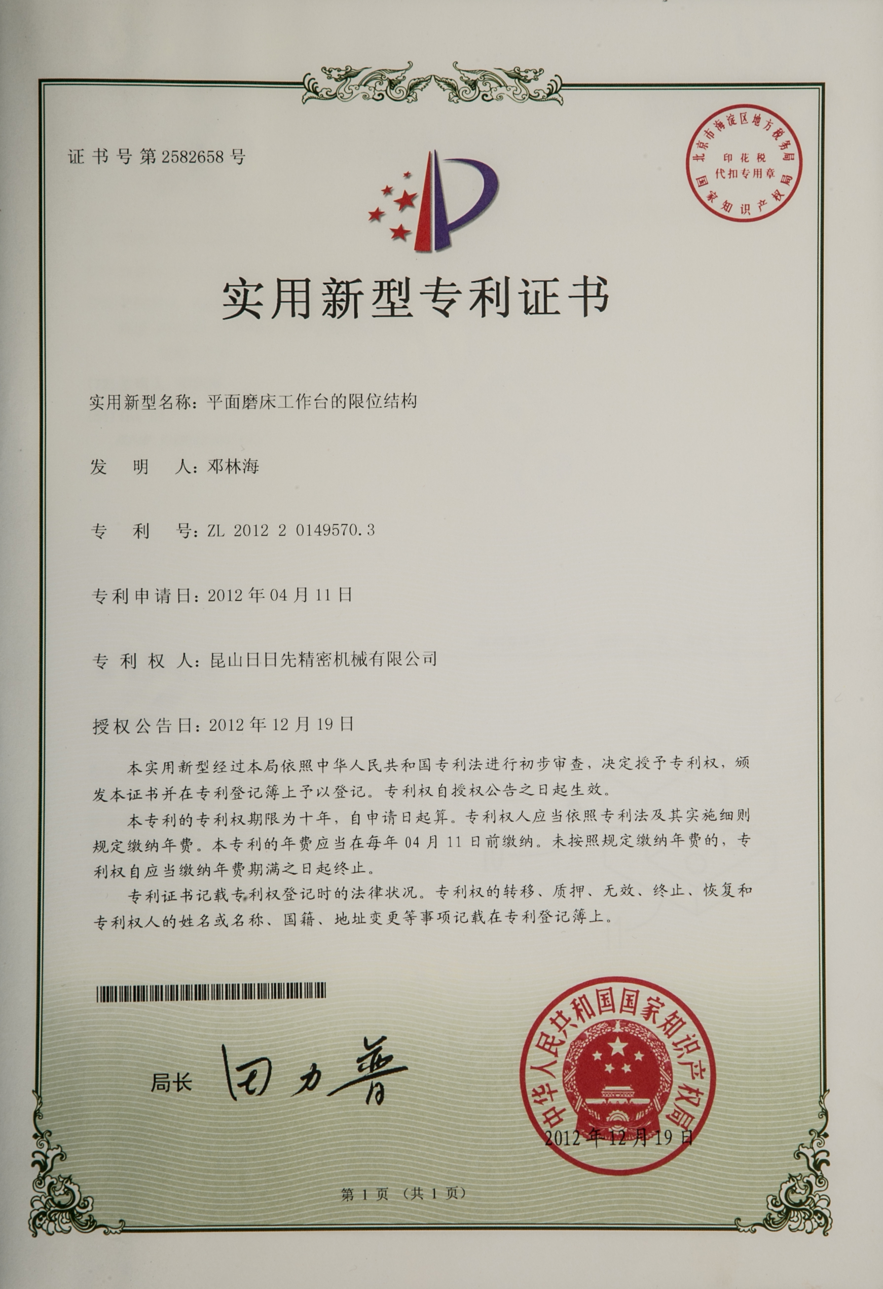 專利證書1